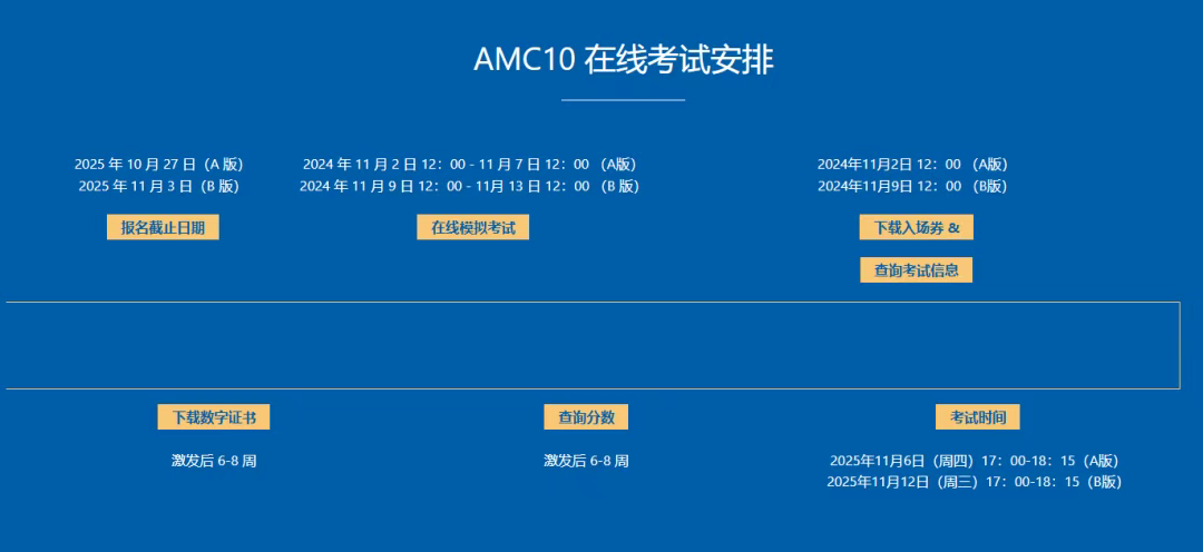 注意!新一轮AMC竞赛正式拉开帷幕,AMC10数学竞赛11月就要考试了,具体考试时间已经公布,2025参赛的同学可以开始收心了。