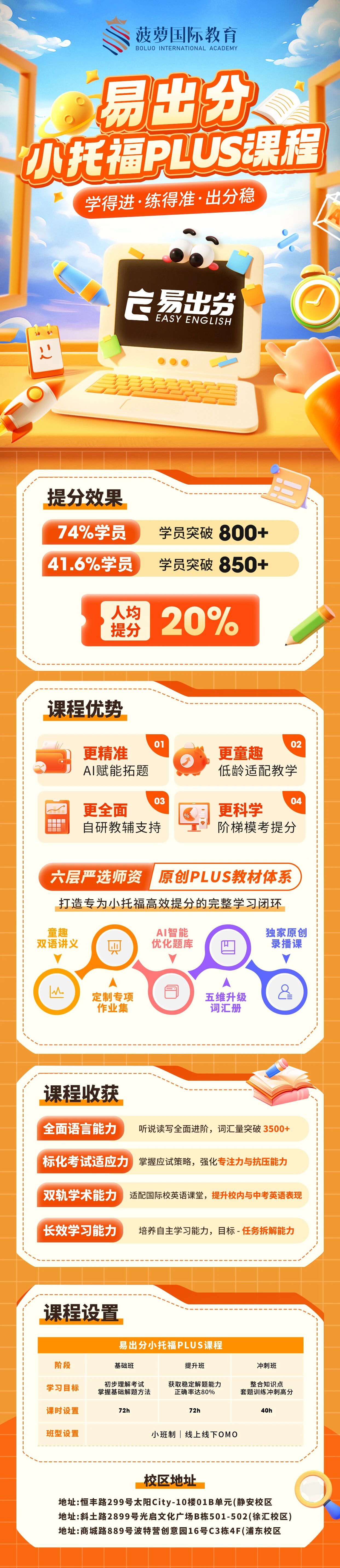 小托福是一个考察多方面能力的考试,而且重在实际运用,所以一定不要急于求成,短时间出分是不现实的!