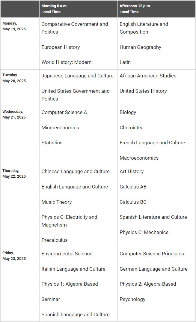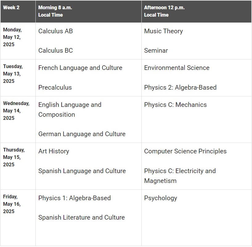 1、2025年AP五月大考时间安排
