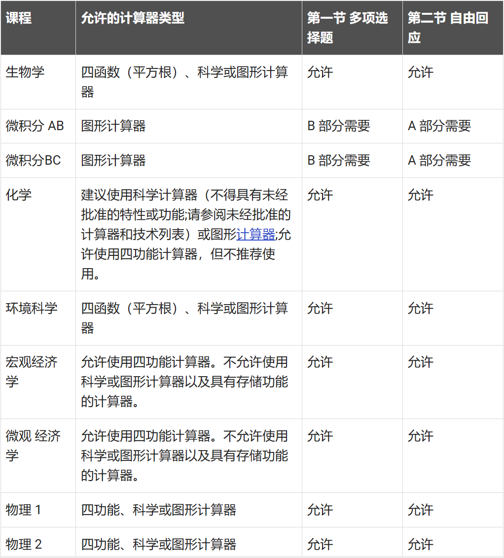 AP对使用计算器的规定