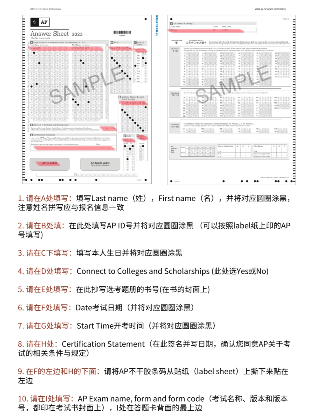 4.AP ID Label Sheet(第一门考试时发,后续每次考试请自行携带。考生的AP ID Label是考生本人专属的,禁止与他人交换或者分享AP ID Label Sheet。AP ID可以在MyAP网站的考生个人信息中找到。)